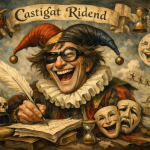 ‘Castigat Ridens’ é um pseudônimo criado a partir da expressão latina ‘Castigat ridendo mores’, que significa ‘corrige os costumes rindo’ ou ‘critica a sociedade pelo riso’, muito usada no contexto da comédia como instrumento de crítica social.”