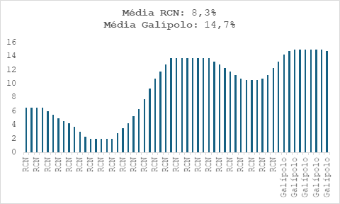 Ora, ao que tudo indica, o COPOM continuou trabalhando firmemente para sabotar o governo. O “menino” apresentado por Lula ao País tornou ainda mais dramática a situação do Brasil depois de sua posse no BC. O gráfico abaixo deixa clara a evolução da SELIC desde 2019. Durante a gestão de RCN, a SELIC média foi de 8,3%. Já depois da posse do indicado por Lula, esta média subiu 14,7%.