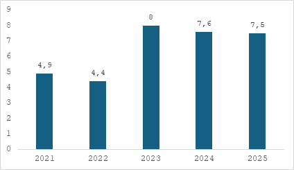 Esse movimento pode ser confirmado pelo acompanhamento dos últimos anos, quando o crescimento dos encargos dos títulos de endividamento do Tesouro Nacional tem sido bastante evidente. O gráfico abaixo exibe os valores anuais crescentes desde 2022 e o patamar trilionário atingido em 2025.