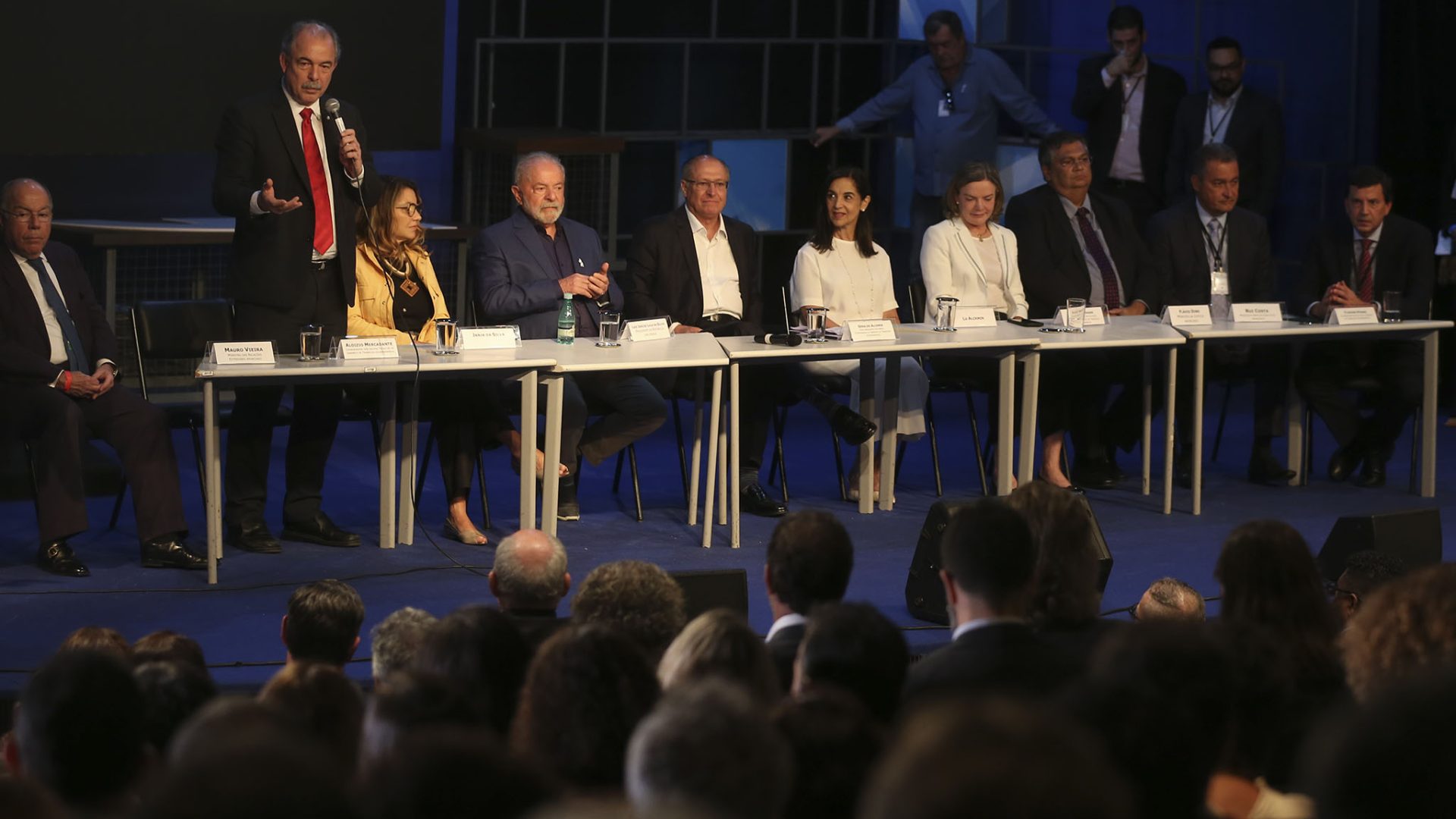 O anúncio foi feito em ocasião do evento para encerramento das atividades dos grupos técnicos do gabinete de transição, no qual Lula estava ao lado do vice-presidente eleito Geraldo Alckmin (PSB), das primeiras-damas Janja e Lu Alckmin, da presidente do PT, Gleisi Hoffmann, de ministros já indicados para seu governo e outros coordenadores da transição, como o próprio Mercadante.